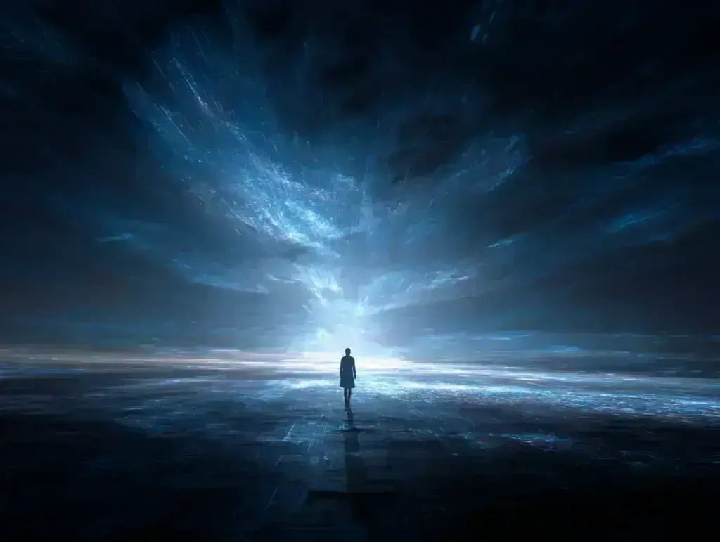 Ein digitales Kunstwerk über Ursprung, Bewusstsein und die Suche nach Sinn.